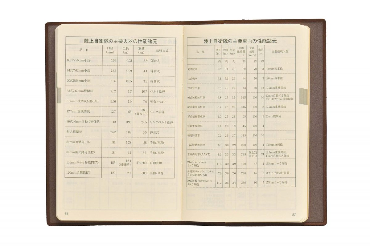 タイムマネジメントに最適な老舗のビジネス手帳「NOLTY能率手帳」と自衛隊情報がコラボ。装備の性能諸元や組織編成図などの資料を読みつつ、スケジュール管理を行える。