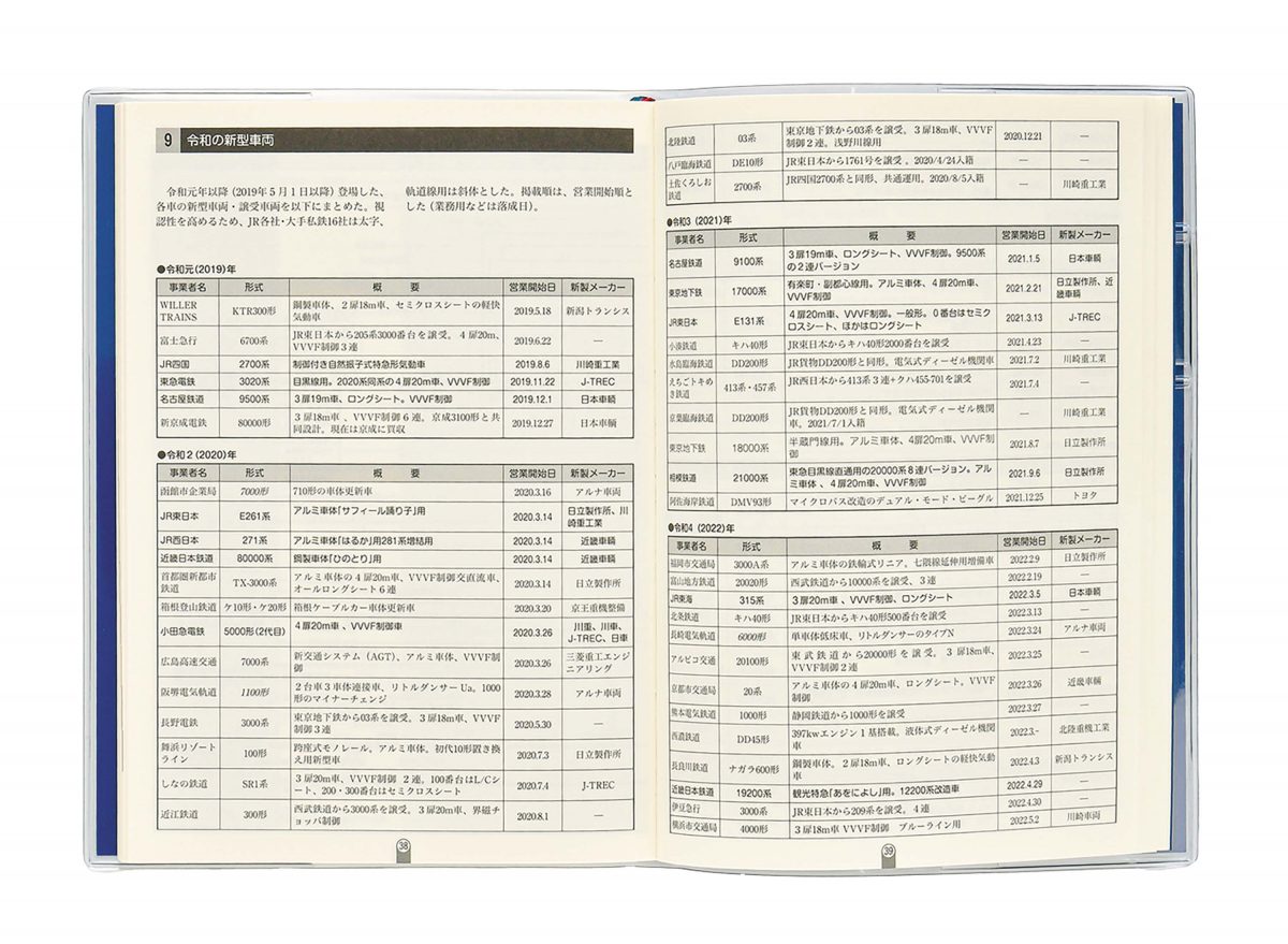 国内の全ての路線と停車場に加え、貨物鉄道や信号場、操車場まで網羅したオリジナルの路線図を収録。来年は「東西大手私鉄の統合分離チャート」など、乗り鉄に嬉しい情報も。