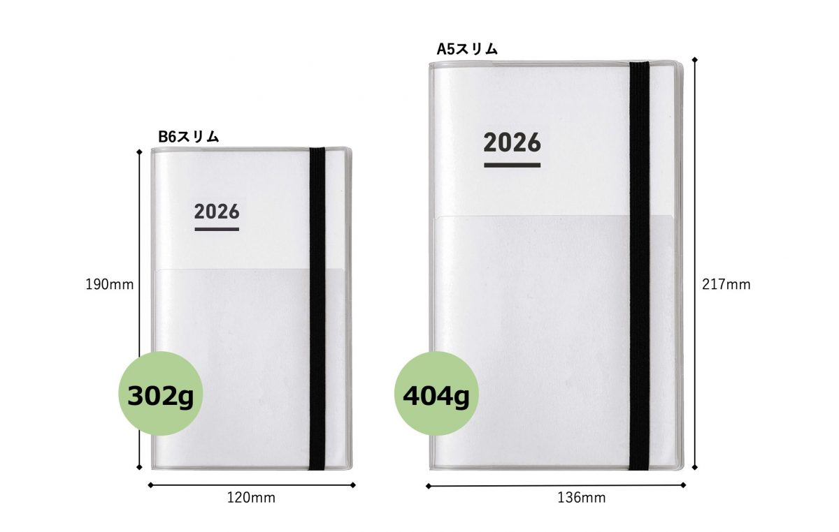 たっぷり書きたい人向けの1日2ページ手帳。24時間ぶんの予定が書き込める目盛り入りで、高い自由度と緻密なログを両立させている。月の目標や予定が書けるフューチャーログページもある。