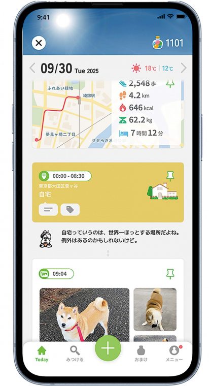 ほかのスケジュールアプリで管理している予定や、スマホでその日に撮った写真、移動履歴などを自動で集約し、1日の記録を残してくれるスマホアプリ。それぞれに軽いコメントを付ければ、あっという間にライフログが完成する。