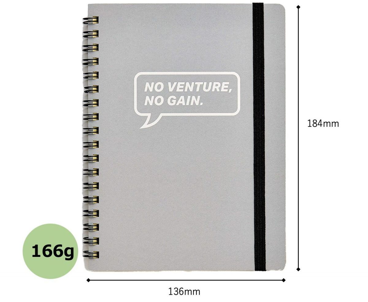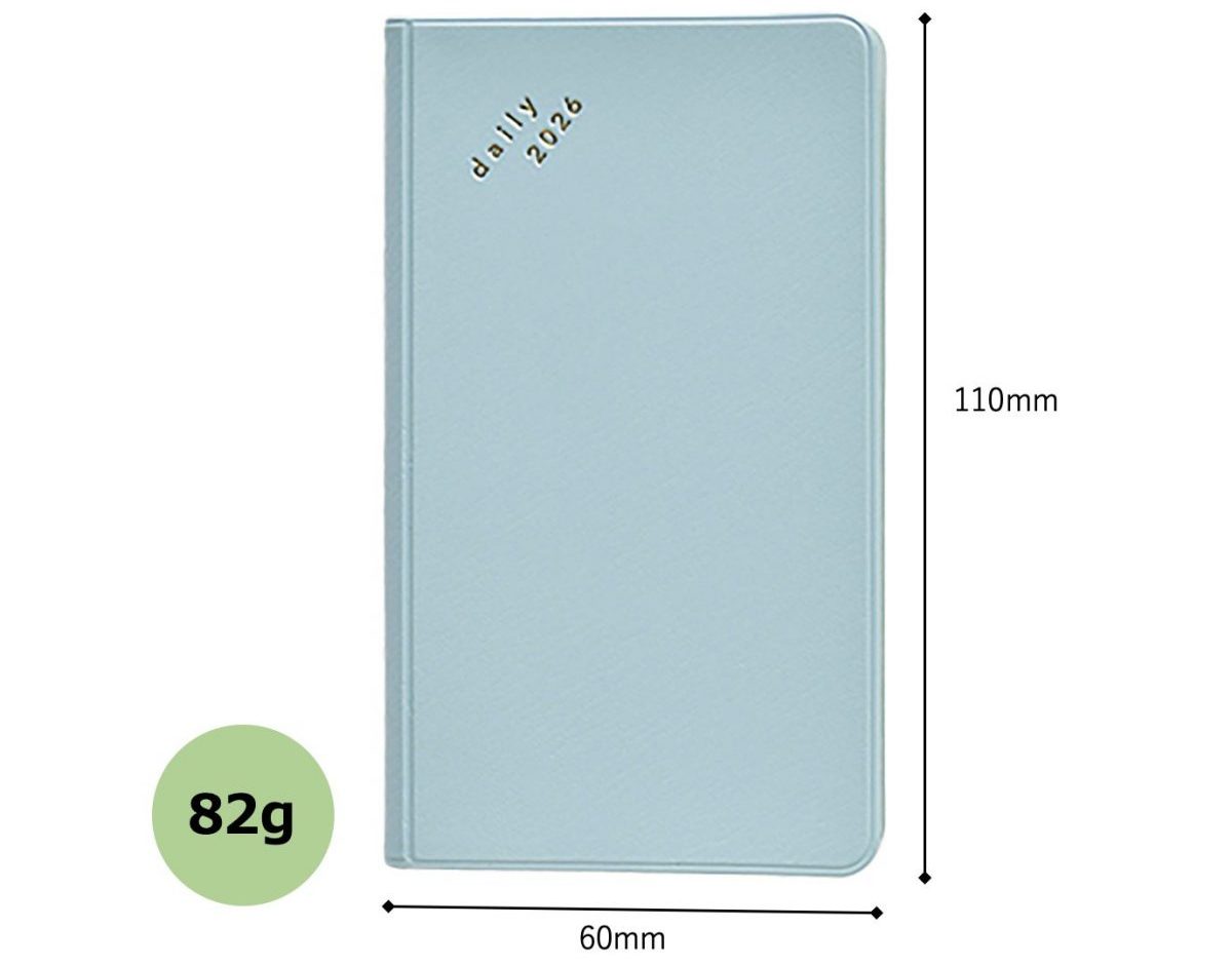 名刺よりもひと回り大きいぐらいのサイズで、携帯性に優れる。日付と2.5mm方眼のシンプルなレイアウトで、日々のログを自由に記録できる。日付が斜めに入っており、タテヨコどちらでも使用可能。