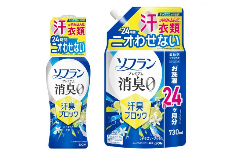 また、新たに衣類の汗のニオイに特化した「ソフラン プレミアム消臭 汗臭ブロック」をラインナップに加え、同日に発売します。