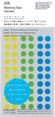 薄くて丈夫な和紙素材でできた丸いシール。透け感があり、重ねて貼ると色の変化を楽しめる。直径5mm、8mm、16mm、20mmの4サイズ展開で、色の組み合わせは8種類。