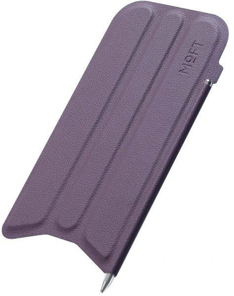 「スマホケースなどで知られるモフトのボールペン。薄いカードを折って立体化する超ユニーク構造で、使わないときは手帳の名刺ポケットに収納できる。付属の金属プレートを表紙に貼ってそこに取り付けることもできます!」