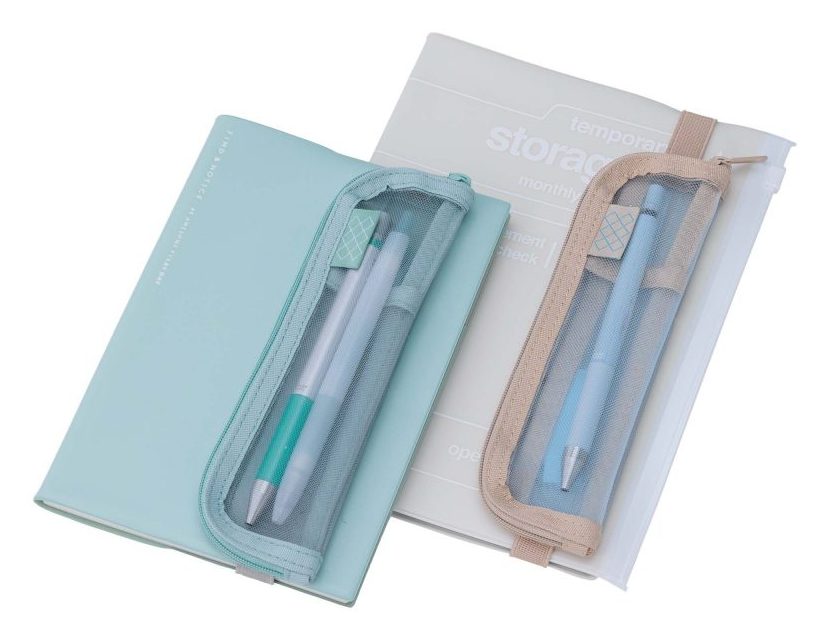 「A6〜B6サイズの手帳にゴムバンドで装着できるメッシュ素材の小物ポーチ。広口で出し入れしやすいのに加え、透ける素材で中身が一目瞭然なのも高ポイントです!」