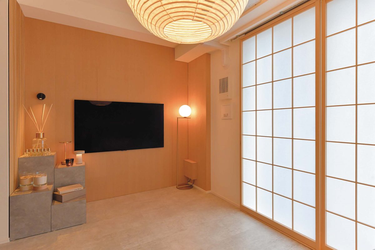 「“本物”にこだわること。例えば、部屋の中心にある大きな照明は、江戸時代から続く京都の提灯屋さんに作ってもらった照明です。竹と和紙を組み合わせて、すべて手作業で製作されています。製作時間もかかるのでもちろん高価ですが、日本のいいモノに宿る、本物から滲み出る心地良さがあると信じています」
