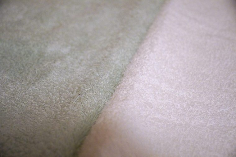 肝心の乾き具合ですが、タオル側に水分がぐいぐいと移っていくため、短時間でそこそこに髪が乾きます。第一印象をたとえて言うなら、これまで使っていたタオルが人工芝ならヘアケアタオル研究は天然芝というくらいの違いを感じました。