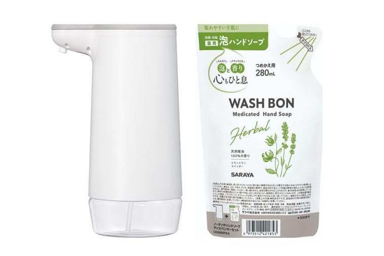 「サラヤ ノータッチ ハンドソープディスペンサー」は、グッドデザイン賞を受賞したスタイリッシュなデザインが特徴。センサーを搭載しており、手を差し出すだけでディスペンサーに触れることなく泡が吐出するので、衛生的に手洗いができます。