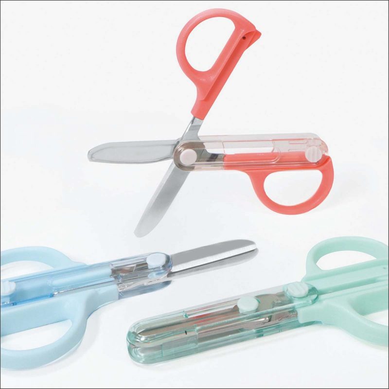 キャップをスライドさせてすぐ使える安全&コンパクトなはさみ