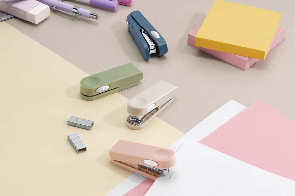 ペンケースに入れやすい小型サイズながらも、PPC用紙10枚まで綴じられ、リムーバーも搭載。側面のパーツをスライドするだけで組み立てられ、機構部に触れずに済むため安全だ。針付きですぐ使える。