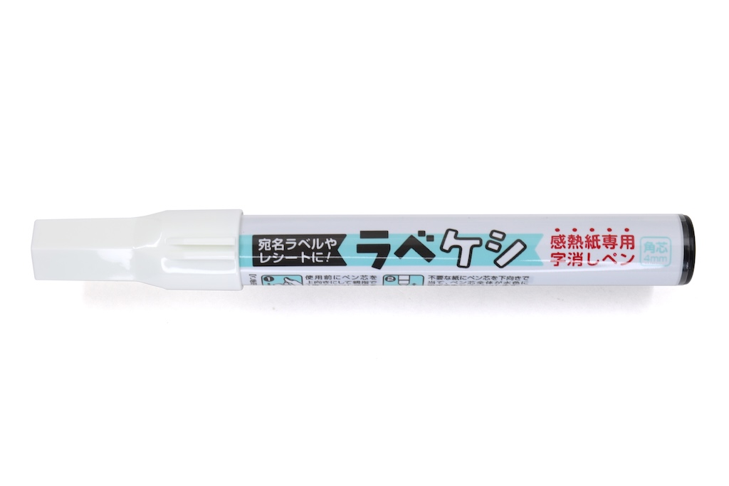 この感熱紙のラベル印字を文字通り“消す”ことができるのが、感熱紙専用の字消しペンというわけだ。