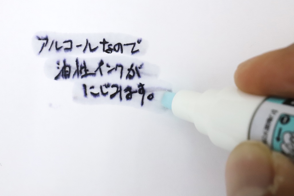 あとはそのままボトルを下向きにして、消したい箇所に直接塗り口を当ててインクを塗り広げていく。