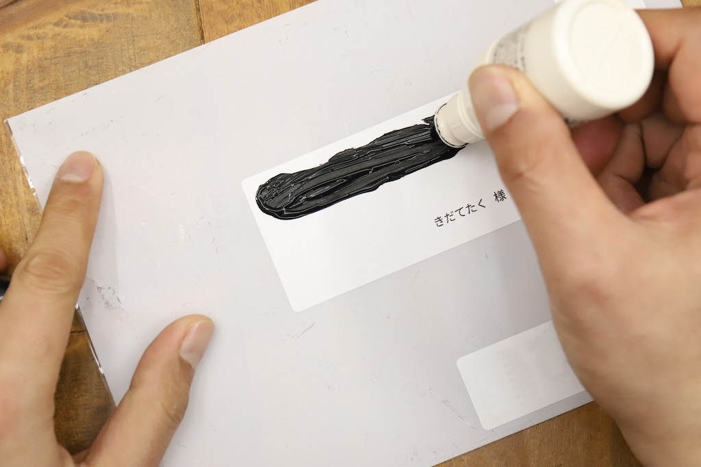 そこで、シヤチハタが「じゃあ『ラベケシ』で消せないヤツは、こっちの方法でどうぞ」と提案してきたのが、“黒塗り”である。