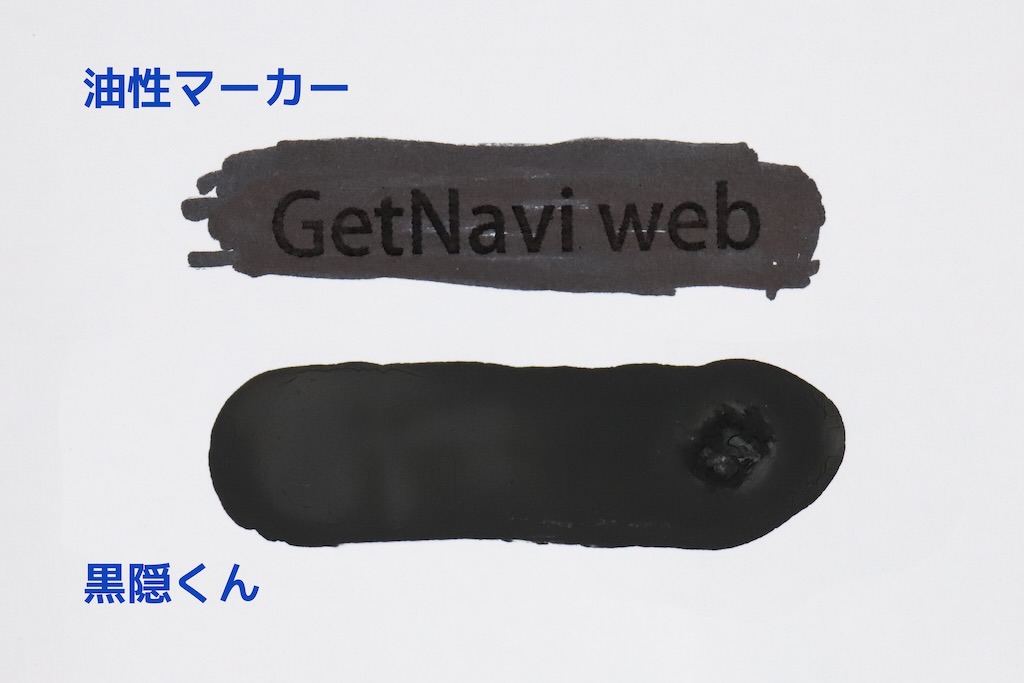 試しに黒の油性マーカーと黒隠くんで塗りつぶしを比較してみると、明確な差が出た(以下の画像を参照)。