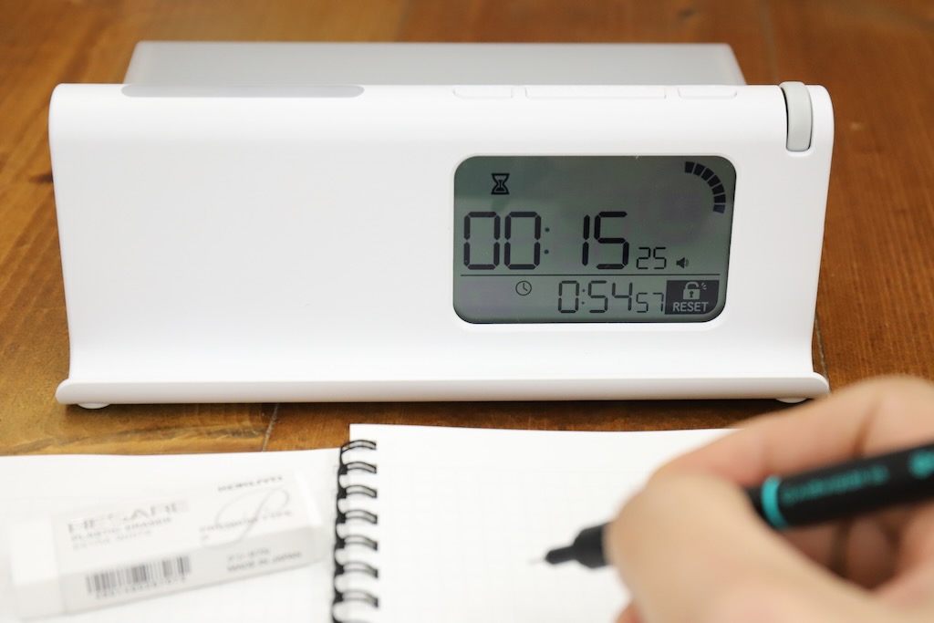 最初にダイヤルでロックをかけておく時間(最小1分〜最大99時間59分)を設定し、スマホを入れてロックしたら、あとは設定した時間分のカウントダウンが終わるまで取り出せない。つまり「いまから2時間は勉強するからスマホを見ない!」という場合などに使うモードである。