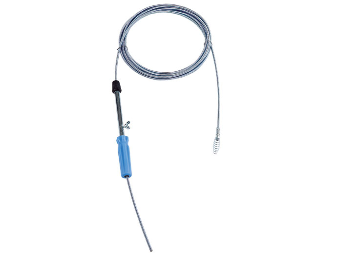 流し・風呂・雨どいなどの排水パイプに挿入して使うパイプ清掃器具。ワイヤーを回しながら押し込むことで、螺旋状の頭部が汚れを粉砕し、つまりを解消 します。折れにくい2重巻構造。
