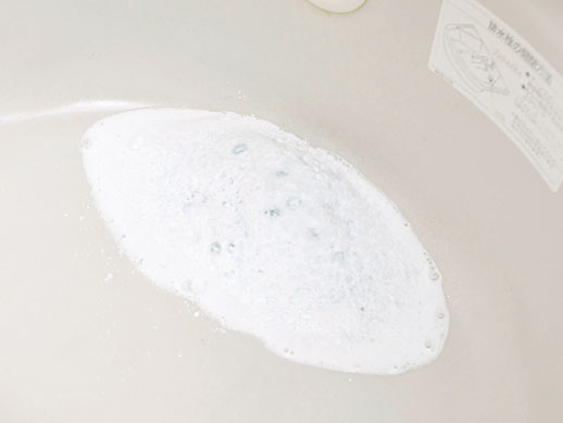 使い方は粒状になっている本剤の1/4程度を温水で溶かし、排水口に静かに注ぐだけ。泡が排水管の壁面の汚れも押し流します。