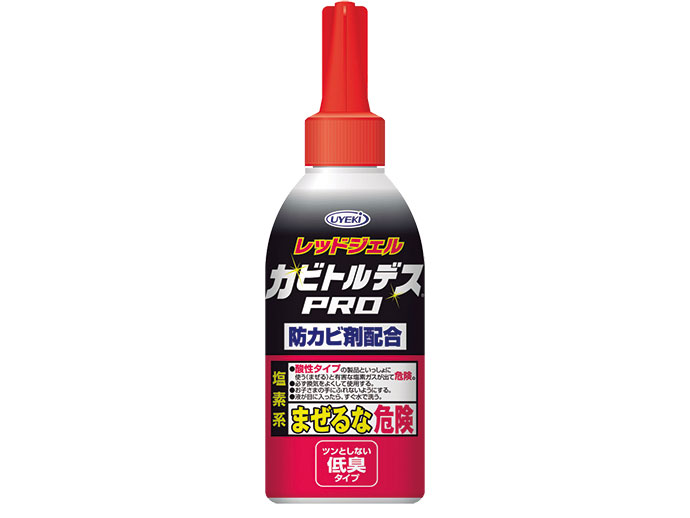 浴室の壁やタイルの目地に発生したカビを、ピンポイントで退治するカビ落とし洗浄剤。強力なジェルが垂れることなくカビに密着し、天井にも使えます。色付きジェルで流し忘れもありません。