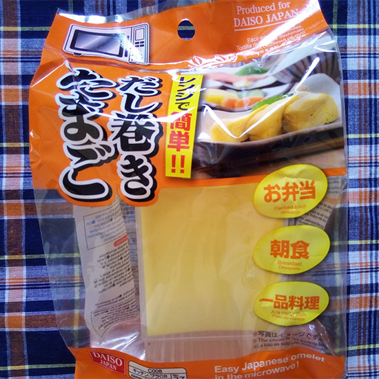 もうひとつ、たまご料理で意外と使えるのがダイソーの「レンジで簡単!!だし巻きたまご」。こちらはなんちゃってだし巻きたまごですが、見た目はそれっぽくできます。