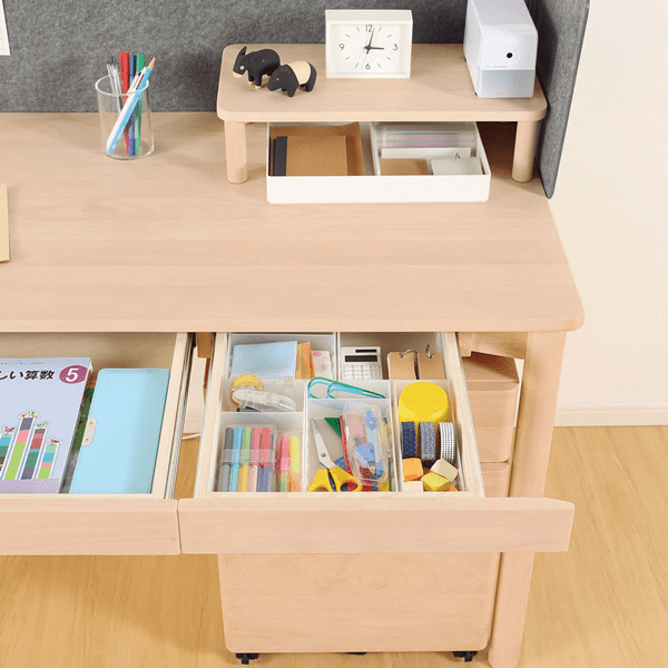 小物や書類の収納に適した収納ケース。1段ずつ取り外すことができ、引き出しの出る方向を交互にすることもできます。高さ約32.5cm
