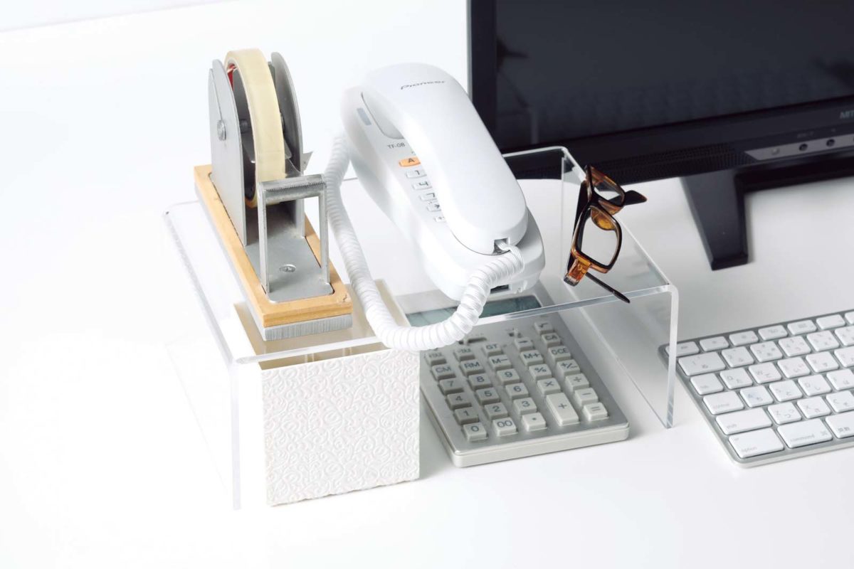 「いかに動線を短くするかが散らからないデスク作りのポイント。スリムなゴミ箱だから、足元に置いても邪魔になりません」(森山さん)