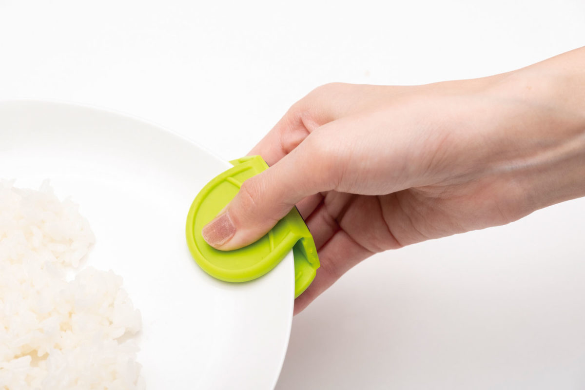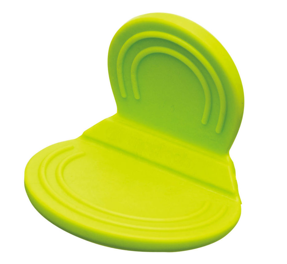 レンチン後、フチが熱くて持ちにくい皿を運ぶときに便利なアイテム。柔らかいシリコン製で、汚れてもサッと洗うだけでOK。マグネット付きなので、冷蔵庫などに貼り付けておけばすぐに使える。