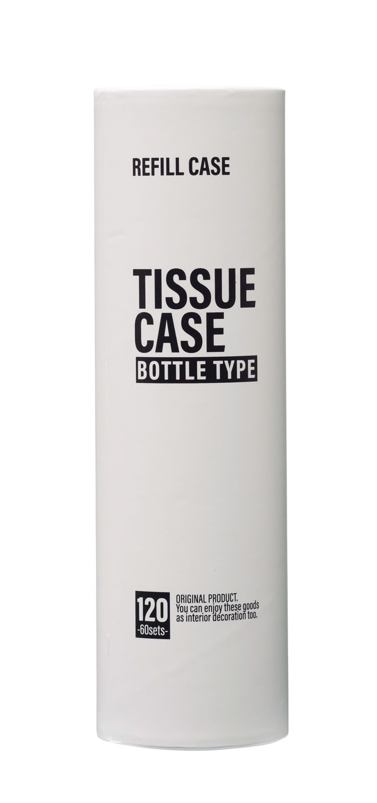 省スペースで置ける、スリムな筒状のティッシュケース。中身のティッシュがなくなったら、市販のティッシュ(横218㎜まで対応)を筒状にして入れることで詰め替え用として使える。