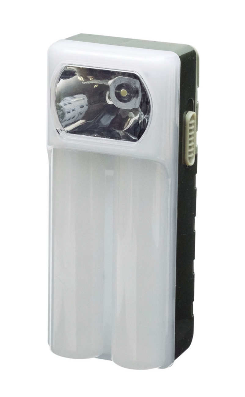 スイッチひとつで12SMD(チップ型の高輝度LED)のランタン、1LEDのライトに切り替えができる。単3乾電池3本使用で、連続点灯時間はSMD約5時間、LED約12時間。スライドフック付き。