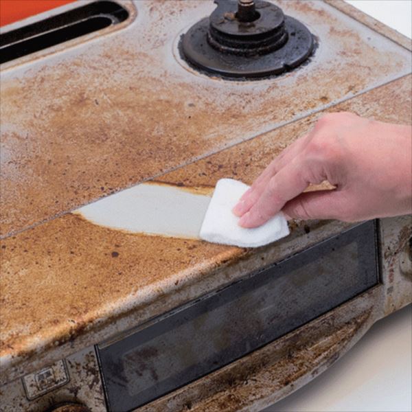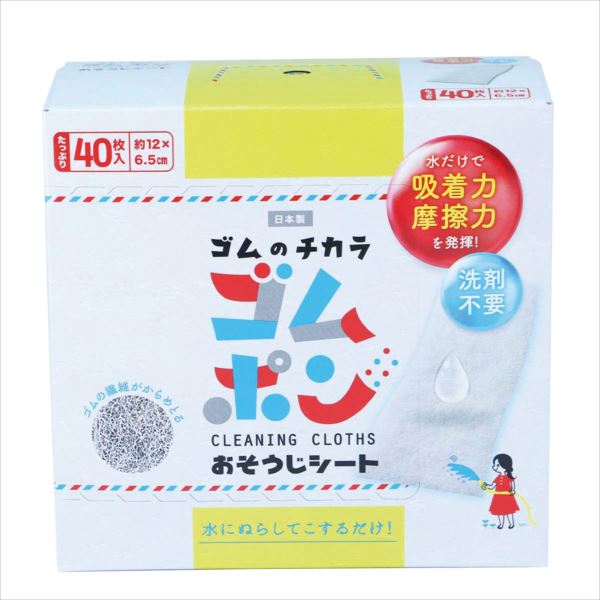 水に濡らしてこするだけで、ゴムの摩擦力と吸油性により汚れを落とすシート。電子レンジやガスコンロなどに付いた頑固な汚れもしっかりキレイに。約12×6.5㎝のシートが40枚入りで、軽い汚れなら手洗いして繰り返し使えます。