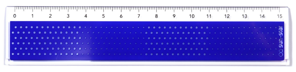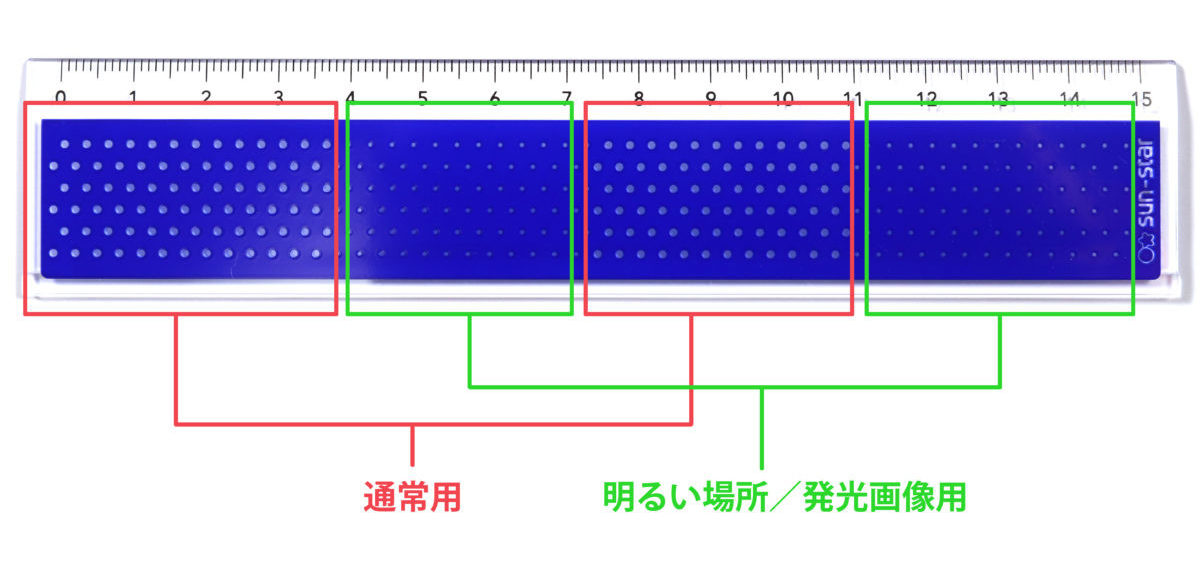 線を引いたり長さを測ったりするのが便利、というのが定規の本道だろう。しかし、全く別の方面で便利な機能を搭載したのが、サンスター文具の「メガミエ」だ。