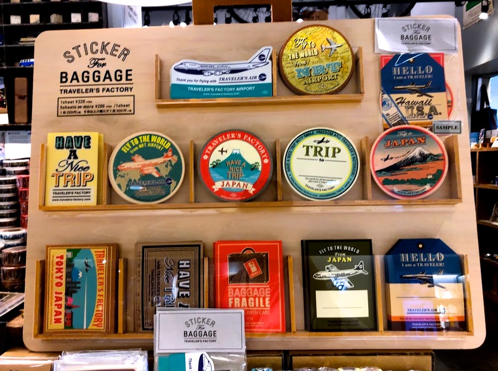 一般的なバゲッジステッカーの楽しみ方として、旅先で購入してスーツケースに貼り、どこに行ったかの記録にする方もいます。ということは、成田空港から飛び立つなら、トラベラーズファクトリーのステッカーを貼らない手はありません。ちなみに私は、日本らしいデザインのものを選びました。