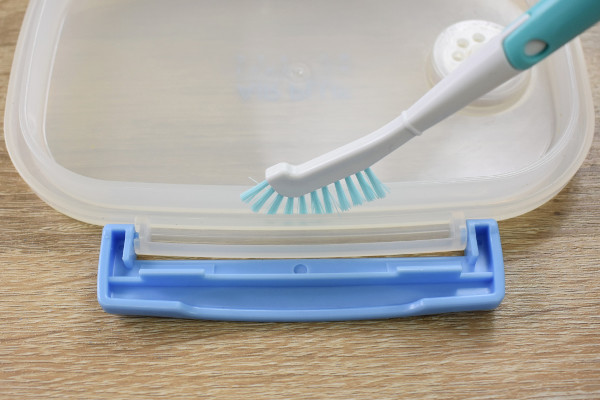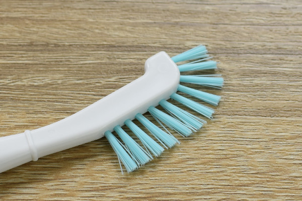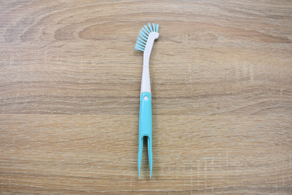 歯ブラシに似た見た目の同商品。実は「ブラシ、ピンセット、ピック」が1つになっており、用途に合わせてそれぞれのパーツを使い分けられます。それではパーツごとに使い方を確認していきましょう。ブラシの毛先は縦一列に並んでおり、ちょうど“モヒカン”のような形状です。毛の硬さもしっかりしているので、弁当箱の溝を洗う時にはうってつけ。