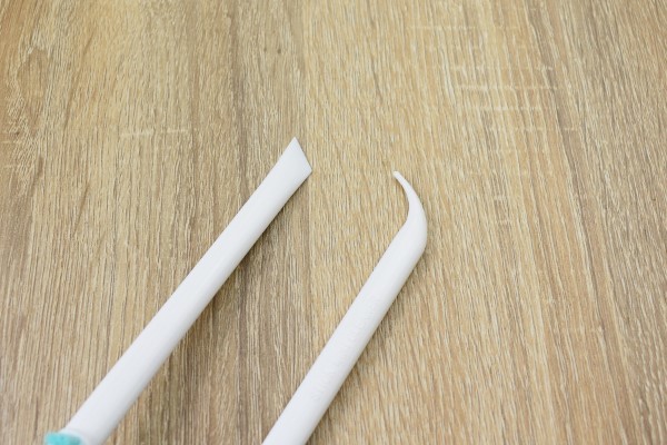スリムブラシは、歯ブラシのヘッドが反り返ったようなデザイン。また、水切りカゴ洗いと違って柄の先端が“スクレーパー”になっていました。これなら食洗機の細かい隙間だけでなく、平面の汚れもバッチリはがせますね。