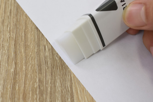 使い方はとても簡単で、一般的なスティックのりと同じように使用できます。なんといっても、のりの側面と角を塗りたい場所に合わせて使えるのが最大のポイント。