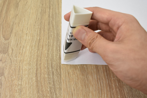紙の端っこをのりづけする時は、三角柱の側面を使うことで難なくのりを付着させられました。また紙の角と三角形の角を合わせるように塗ると、紙の四隅もキレイにのりづけ可能。さらに円柱型のスティックのりにありがちな、転がって机から落下してしまうような心配もありません。
