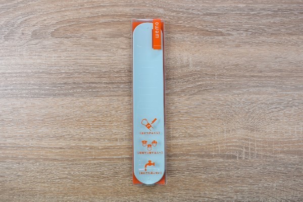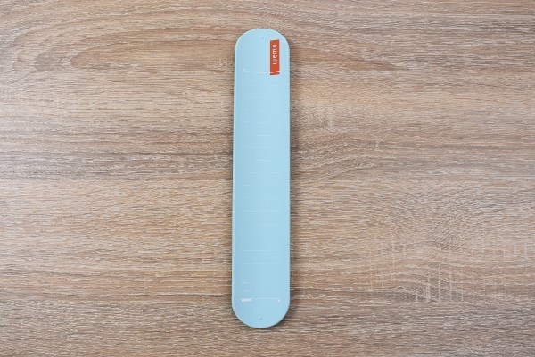バンドは縦23.8cm、幅4.5cmの細長いサイズ。肌を傷つけにくい“シリコン”で作られているため、ゴム特有の弾力がありました。またボディが靴べらのように湾曲しており、表面はスベスベとした手触り。
