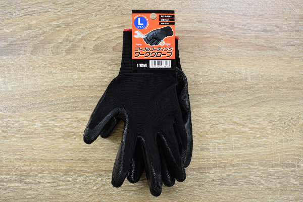 手のひら部分が光沢のあるニトリルゴムでコーティングされており、100均グッズとは思えないほど高級感がたっぷり。ニトリルゴムが指先までしっかりと保護しているので、切り傷や擦り傷を負う心配もなさそうですね。それでは実際にグローブを装着してみましょう!