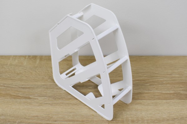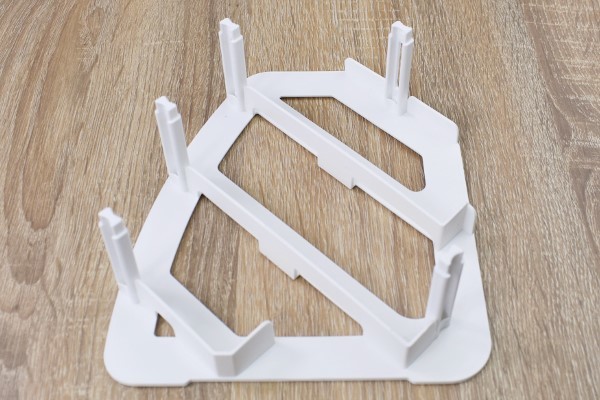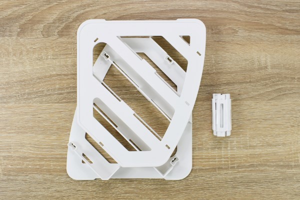 パッケージを開けると、スタンドは2つの部位に分かれていました。5つの連携パーツで左右をドッキングすれば“ラップスタンド”が完成。ネジ留めなどの必要はなく、簡単に組み立てられるのはありがたいですね。