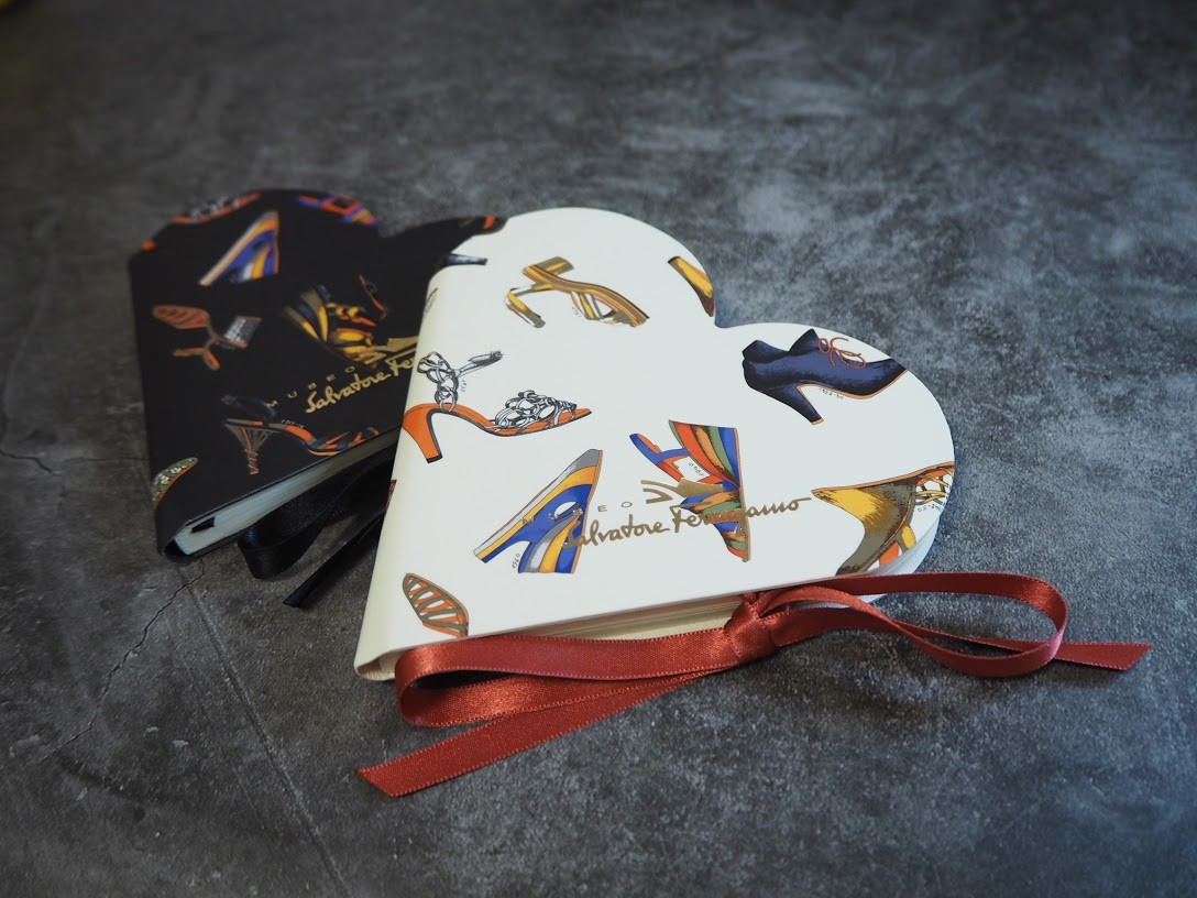 さて、思わぬ展開で手に入れたフェラガモの文房具ですが、実に美しい。写真のノートは、中は無地で、表紙と同じ紐がしおりにも使われています。そして表紙に描かれた靴は、どれも実際にフェラガモが作っているものです。使い勝手が良いとは言えませんが、そんなことを言うのは野暮というものでしょう。