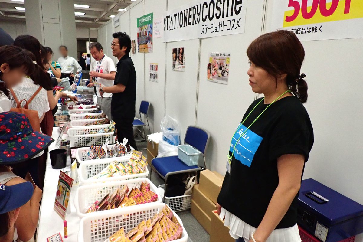 文紙メッセは、展示会なのに物販コーナーがある、というのがまた面白い。展示ブースで見て気になったあの製品が、普通に物販コーナーで買えたりするので、そりゃお客さんもテンション上がって爆買いするわな、といった感じなのだ。