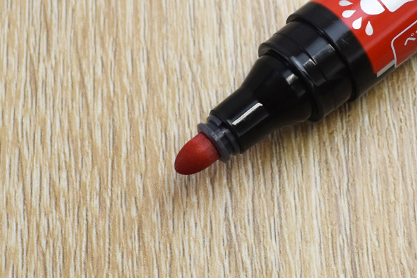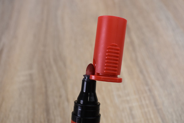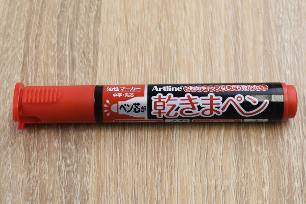 パッと見はなんの変哲もない1.5mm幅の油性マーカー。しかし、普通のマーカーと大きく違う点が3つあります。1つ目は名前の通り、“ペン芯が乾かない”こと。特殊なインキが皮膜を作って蒸発を抑えてくれるため、約2週間“キャップなし”でも問題なく使えるのが魅力です。