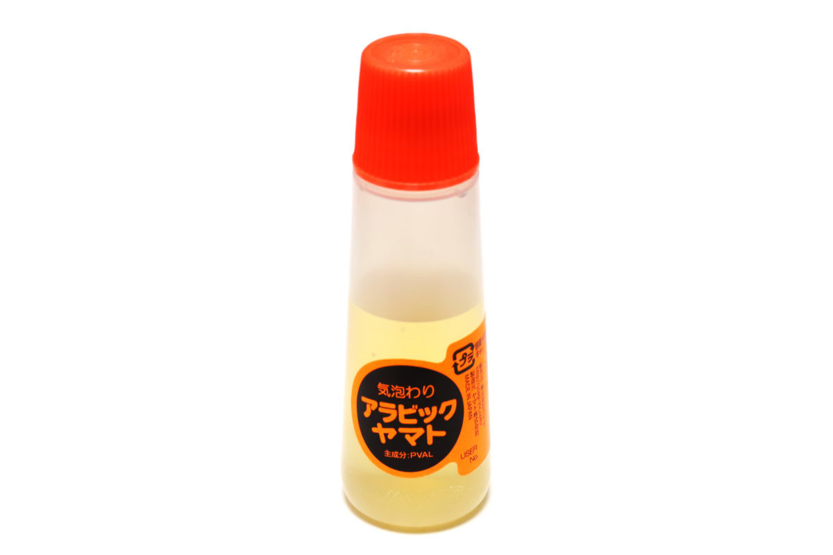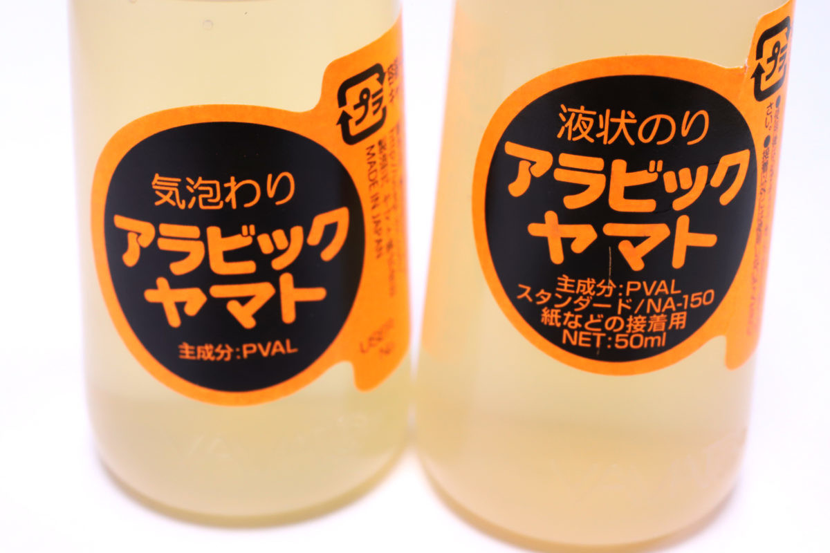もちろん、「気泡わり専用アラビックヤマト」は“専用”を謳っているだけあって、ただのアラビックヤマトではない。高橋氏とヤマトの研究開発室が共同で、気泡割り遊びに最適なのりの量を解析し、わざわざ日本の国内工場(通常のアラビックヤマトはタイ工場製)で充填したもの。……あとはラベルが微妙に違うだけで、それ以外はまんまいつものアラビックヤマトなんだけれど。(中蓋さえ外せば、のりとして使用可能)