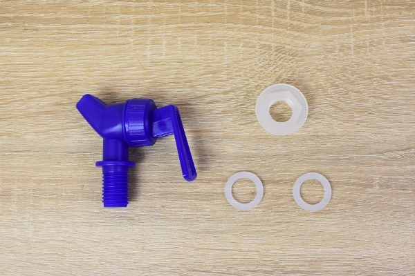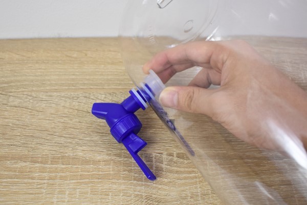 同商品は組み立て式となっていますが、ポリ容器にコックをつけるだけで完成。工程はコックをナットで締めるのみで、誰でも簡単に組み立てられます。