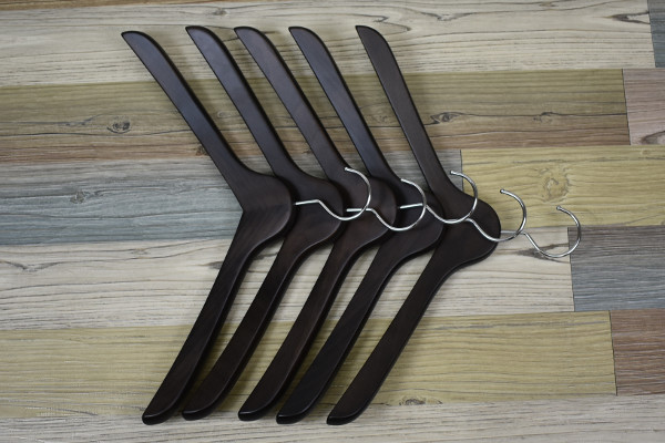 美しい見た目と機能性を兼ね備えた「SET-02 メンズシャツハンガー5本組 スモークブラウン」(中田工芸)