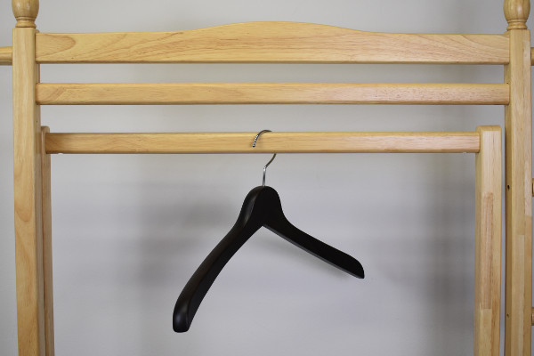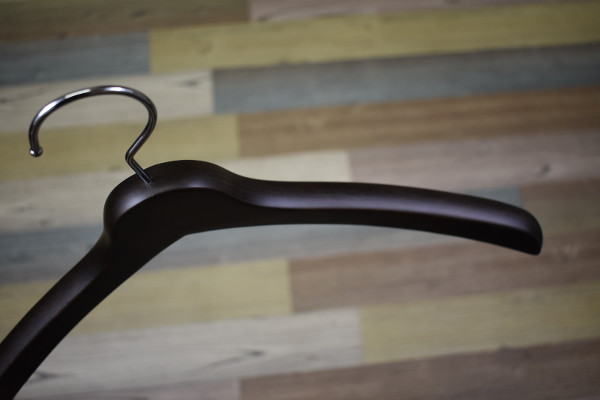 “くの字”型で艶のあるハンガーは、無駄のないシンプルなデザイン。本体が天然木(ブナ材)で作られていて、触り心地はツルツルでした。また木のもつ美しさや温もりもハッキリ伝わり、一般的なハンガーからは感じられない高級なオーラが。どうやら1本1本職人が手作業で製作しているようです。