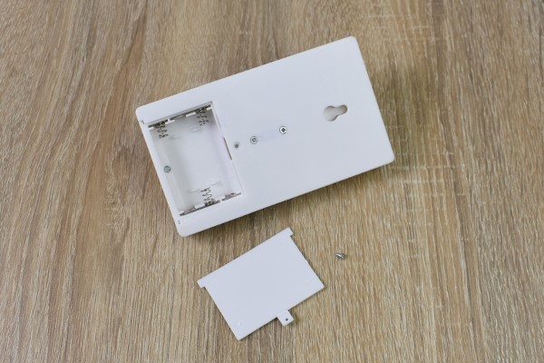 四角形の箱にスイッチがついているだけの、大変見た目がシンプルな同商品。壁に掛けるタイプとなっており、裏側にはフック穴が。白い壁に掛ければ、同色で目立たないためインテリアの邪魔になりません。壁に掛けてみたところ、洗練されたデザインのおかげか良く馴染んでくれました。