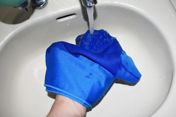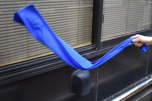 それでは早速、使ってみましょう。タオルの生地が柔らかいおかげで、絞りやすさは良好。周囲になにもないことを確認してから、タオルを思いきってブンブン振ります。しばらくすると、徐々にタオルが冷たくなっていくのを感じました。