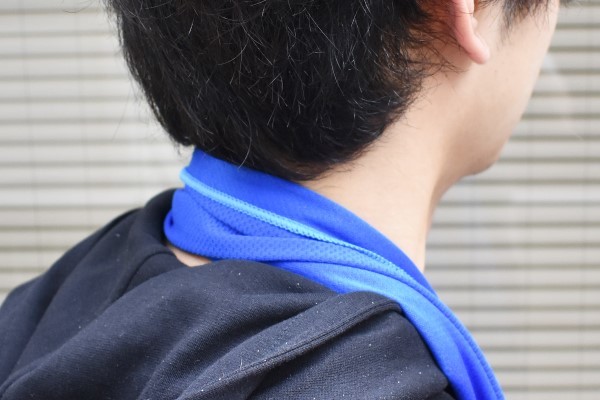 試しに首にかけてみたところ、肌触りのいいタオルからひんやりとした冷気が。もしぬるくなってきた場合は、再度振ることで冷たさが復活します。まさに“無限にクール”を味わえる夢のようなアイテムですね。