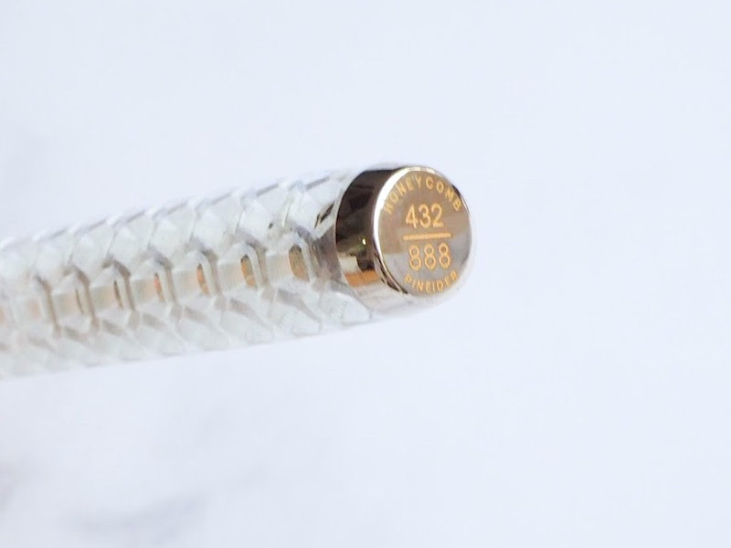 かなり太いのですが、透明なハニカム構造なのでまったく太く見えません。だから、私のように手が小さい人にも似合います。888本の限定生産なので、シリアルナンバーも記されていますね。