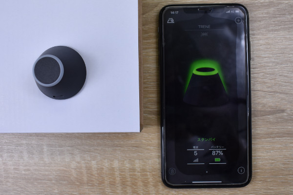 次に「TRENE」の性能をチェック。アプリをダウンロードすると、接続の準備に必要な初期設定が行えます。設定完了後、画面の「スタンバイ」をタップすればデフォルトで使える状態に。詳細設定で「アラームの音量」や「LEDの光り方」を変更してもOKです。ホーム画面ではトレネ本体の現在状況を確認可能。トレネ本体の状態や電波状況、バッテリー残量などがひと目で分かります。